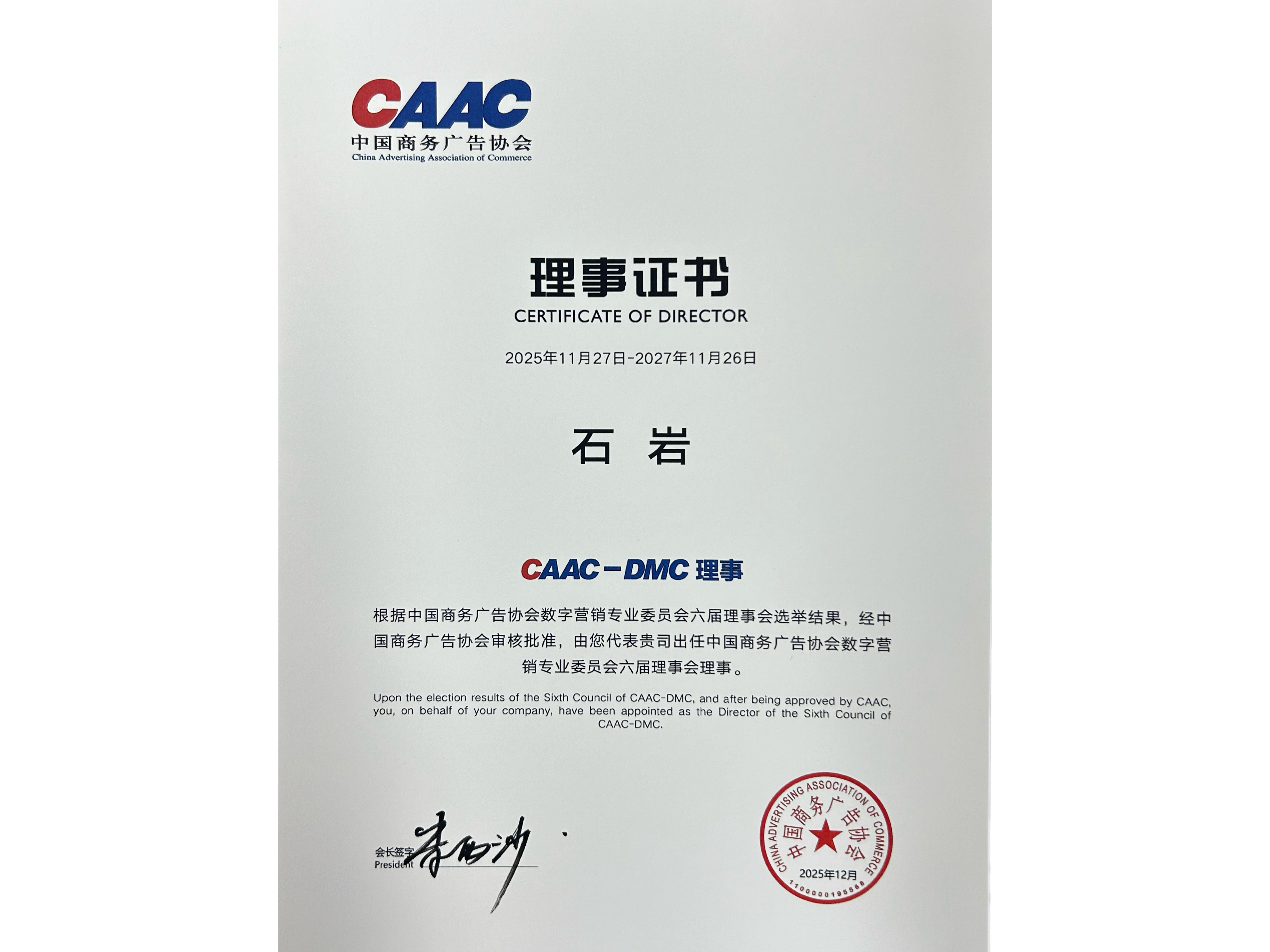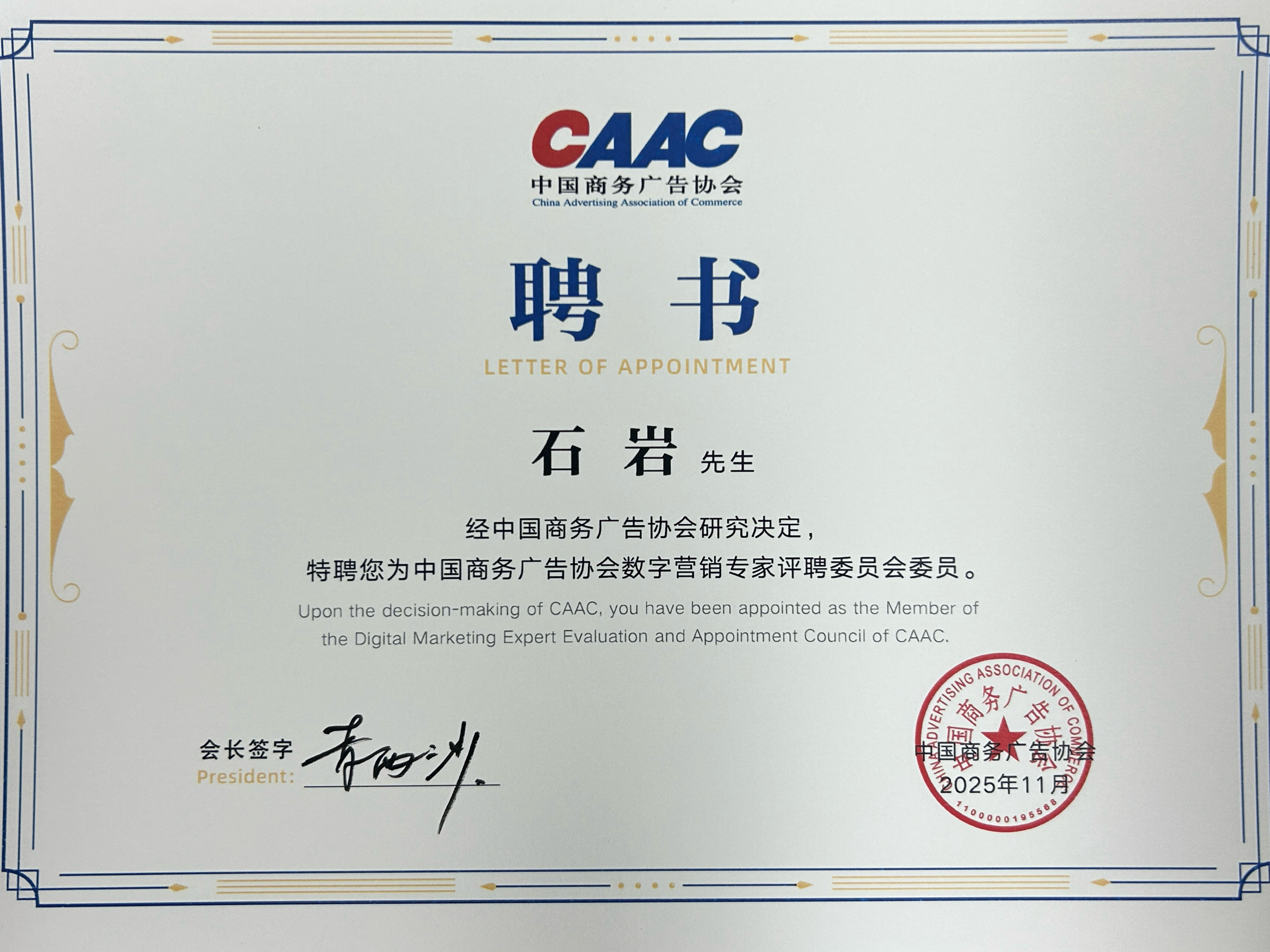 CAAC数字营销专家评聘委员会委员聘书-石岩