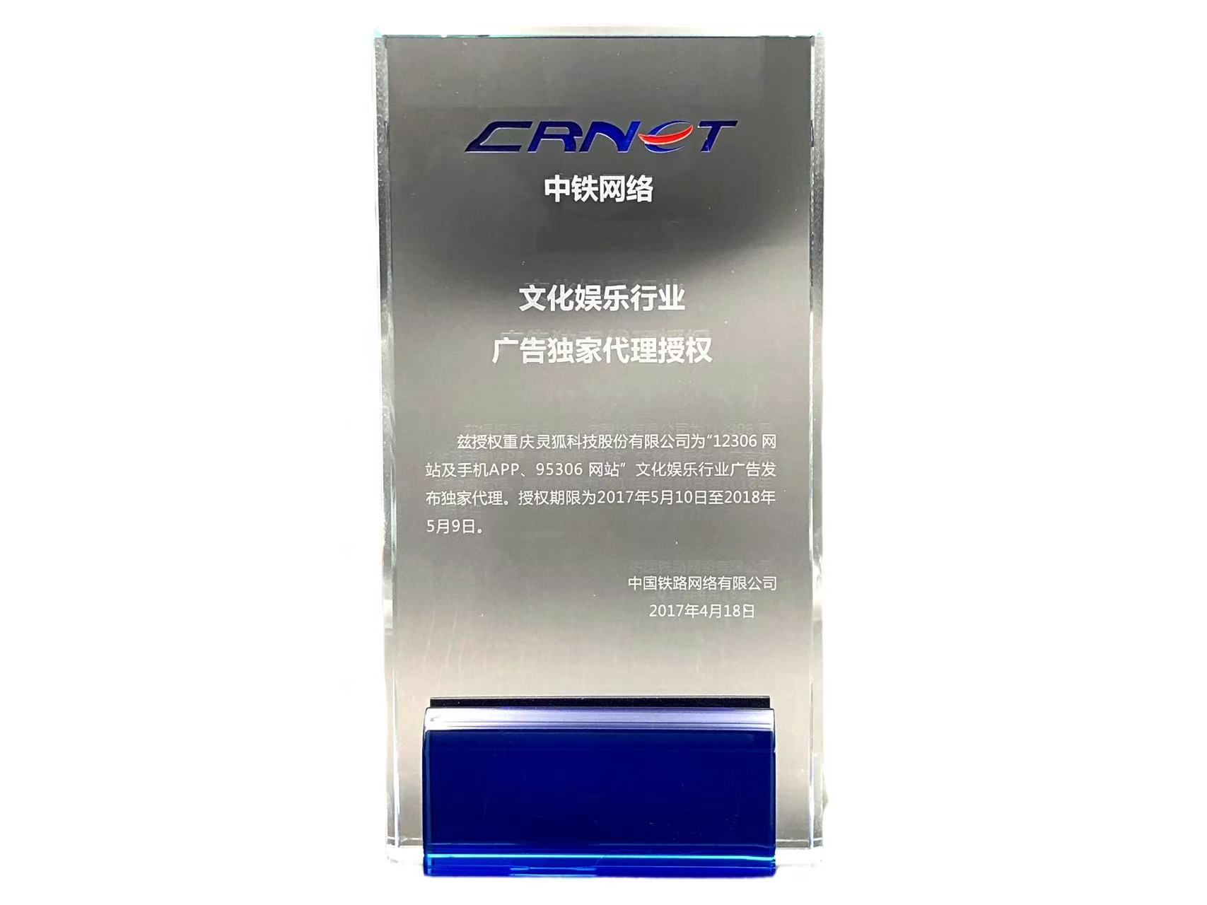 中铁网络-文化娱乐行业广告独家代理授权-中国铁路网络有限公司颁发